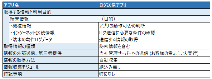 秘密情報の外部送信を伴う該当アプリをご利用いただく際は、アプリの初回起動時に情報取得について同意をお願いします。同意いただけない場合、該当アプリの起動や機能に制限が生じる可能性があります。
