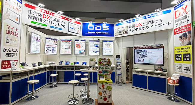 また、DXに欠かせない情報端末サポートとして自治体向けDXソリューションのご紹介や、会議DXを支援するデジタルホワイトボードの展示をおこないました。