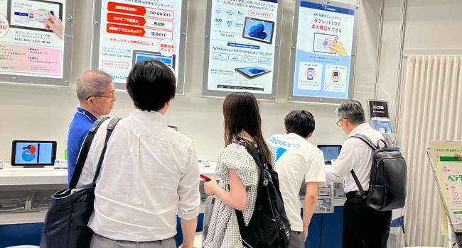 当社のブースでは、自治体DXを支援するタブレットとして、NFCリーダーを搭載した「TA2C-NF8」をメインに展示。