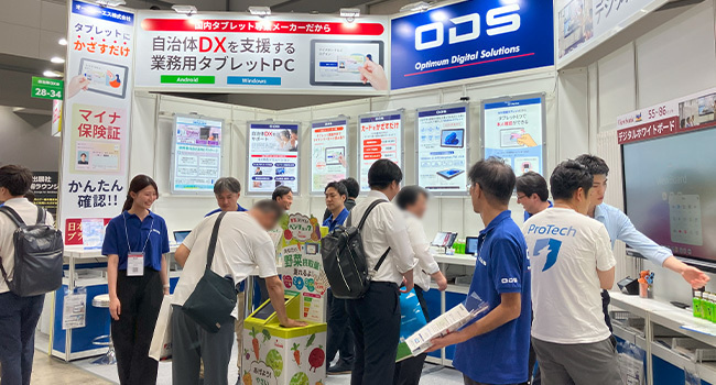 2025年7月2日(水)~4日(金)に、東京ビッグサイトで開催された 「自治体・公共Week2025」第5回 自治体DX展にて当社のタブレットおよび関連サービスの展示・紹介をおこないました。「自治体・公共Week2025」は、自治体・公共向けの7つの専門展で構成され、自治体・官公庁、議員、公共施設関係者が日本中から来場する展示会です。