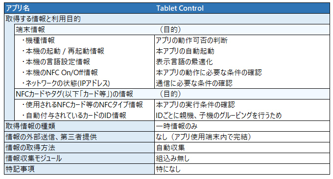 秘密情報の外部送信を伴う該当アプリをご利用いただく際は、アプリの初回起動時に情報取得について同意をお願いします。同意いただけない場合、該当アプリの起動や機能に制限が生じる可能性があります。