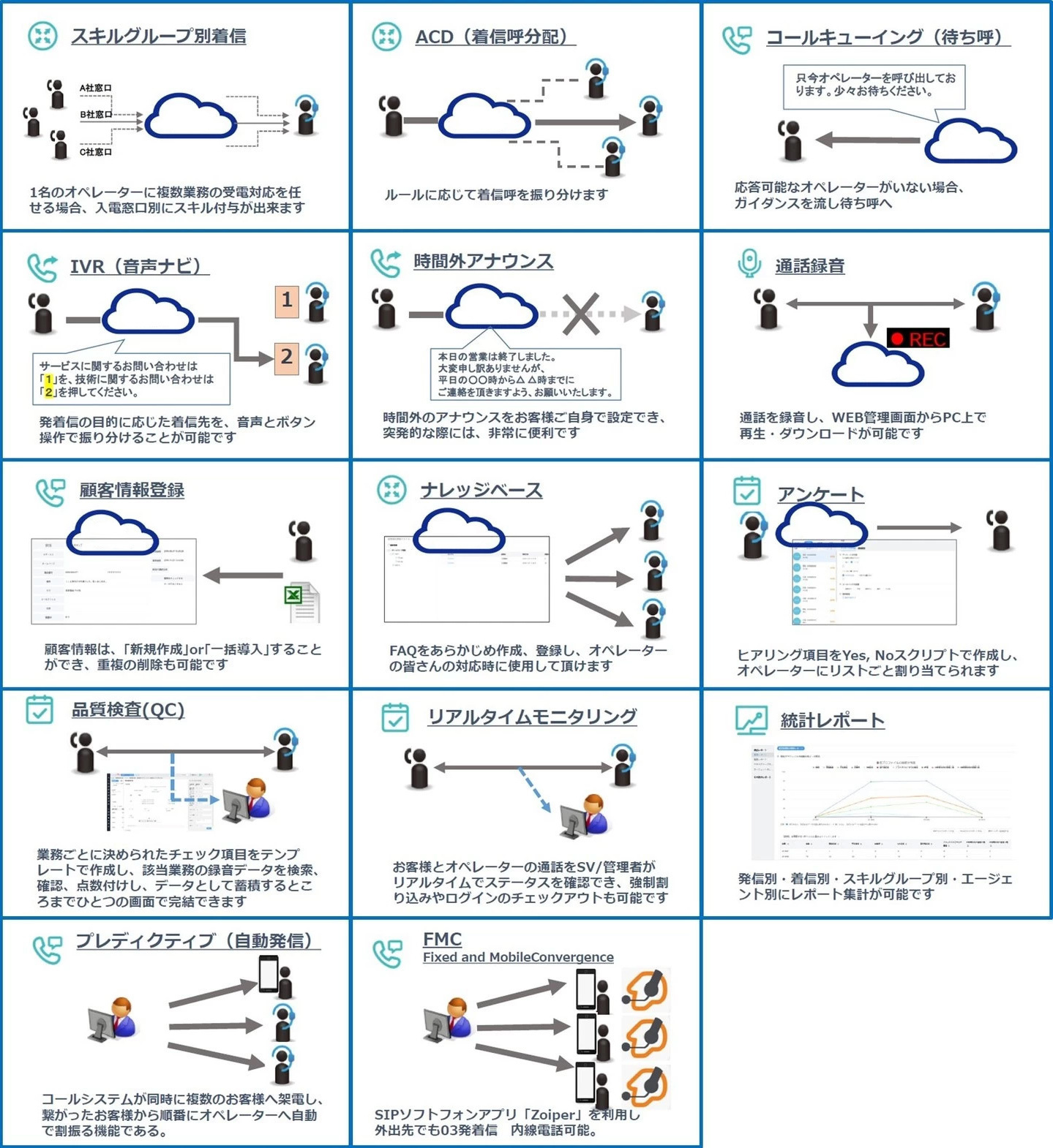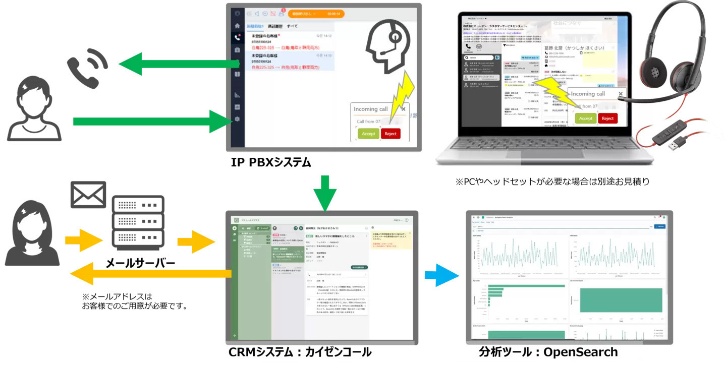 CRMシステム「カイゼンコール」と、クラウドPBXをセットにしたパッケージ。新規コールセンター立ち上げや小規模窓口、臨時窓口などにおすすめです。