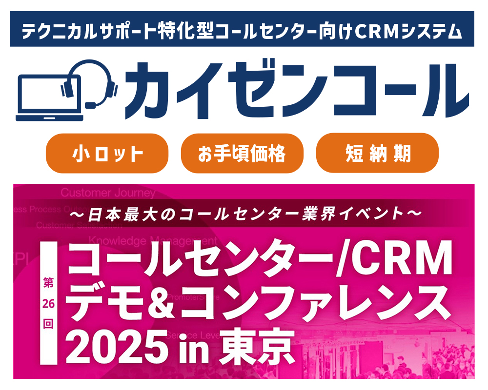 業務用情報端末メーカーでありデジタルソリューション事業を展開する当社は、テクニカルサポートに特化した自社開発のコールセンター向けCRM(顧客管理)システム「カイゼンコール」を、2025年11月13日(木)~14日(金)に池袋サンシャインシティで開催される「コールセンター/CRM デモ&コンファレンス 2025 in 東京」に出展します。
